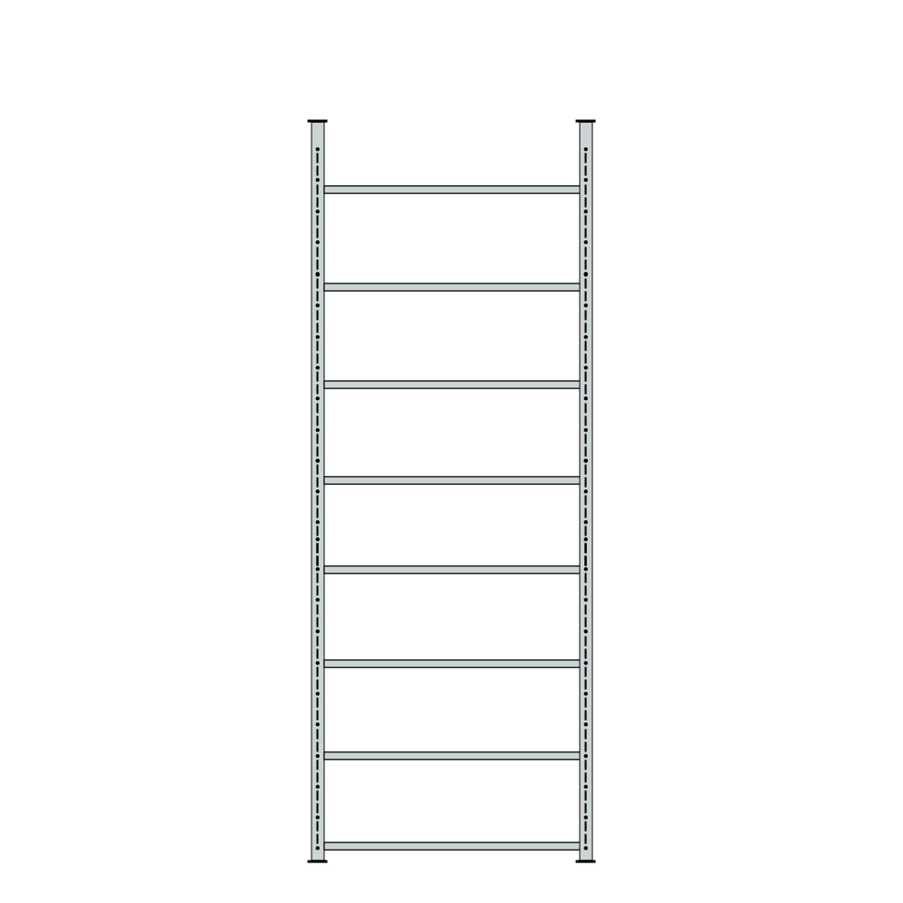 Für einseitige Nutzung. Günstiges Schraubregal mit Winkelpfosten und stabilen Regalböden, die jederzeit im Raster von 25 mm in der Höhe verstellbar sind. Mit hinterer Anschlagleiste. Dauerhafter, kratzfester Oberflächenschutz durch Glanzverzinkung und zusätzlicher Kunststoffbeschichtung in Farbe lichtgrau RAL 7035.
