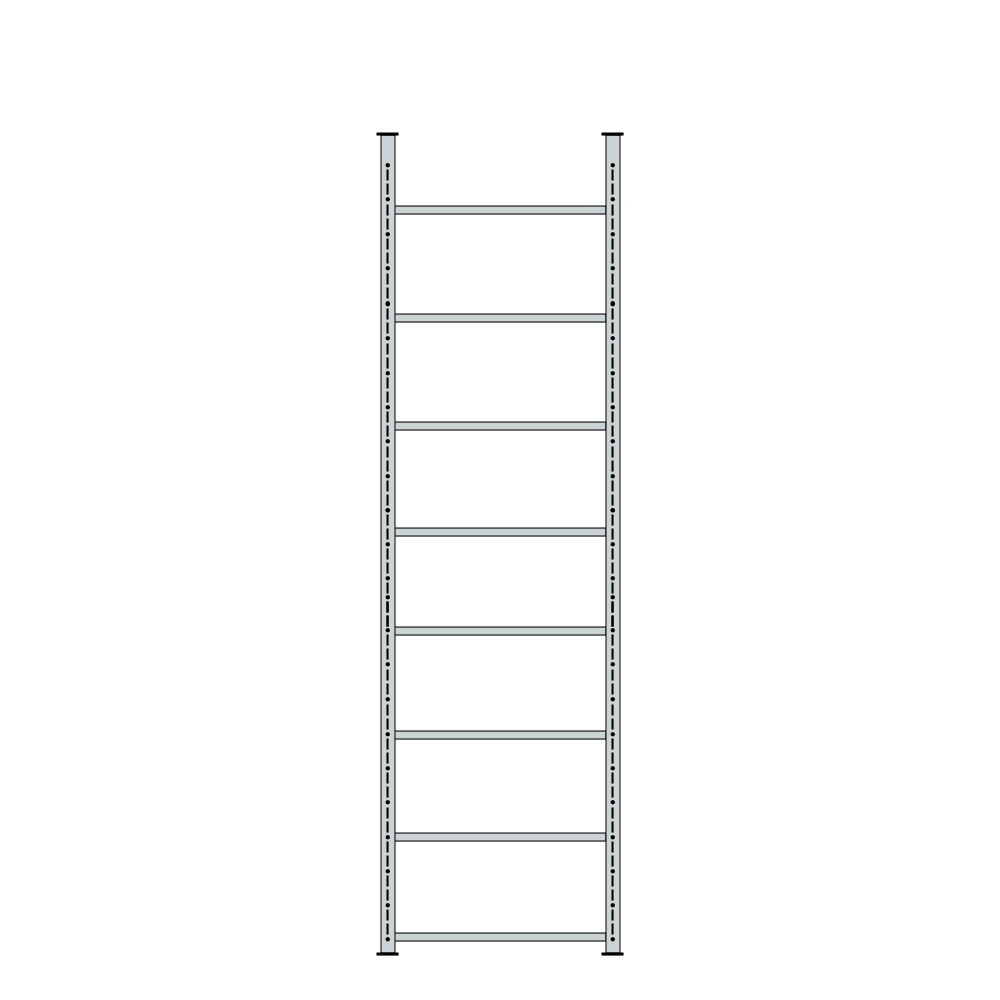 Für doppelseitige Nutzung. Günstiges Schraubregal mit Winkelpfosten und stabilen Regalböden, die jederzeit im Raster von 25 mm in der Höhe verstellbar sind. Mit steckbarem Anschlagbügel in der Mitte der Böden. Dauerhafter, kratzfester Oberflächenschutz durch Glanzverzinkung und zusätzlicher Kunststoffbeschichtung in Farbe lichtgrau RAL 7035.