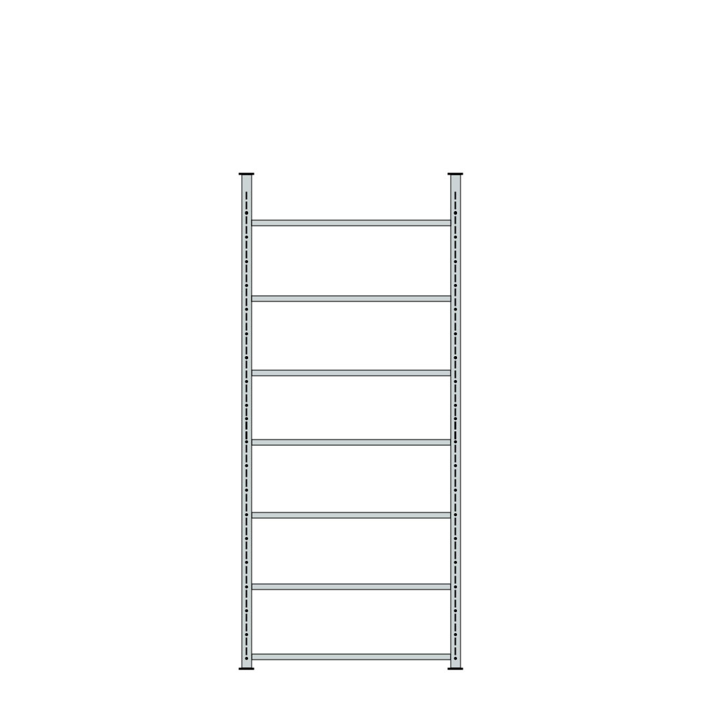 Günstiges Schraubregal mit Winkelpfosten und stabilen Regalböden, die jederzeit im Raster von 25 mm in der Höhe verstellbar sind. Für doppelseitige Nutzung mit steckbarem Anschlagbügel in der Mitte der Böden. Dauerhafter, kratzfester Oberflächenschutz durch Glanzverzinkung und zusätzlicher Kunststoffbeschichtung in Farbe lichtgrau RAL 7035.