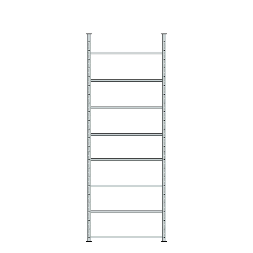 Günstiges Schraubregal mit Winkelpfosten und stabilen Regalböden, die jederzeit im Raster von 25 mm in der Höhe verstellbar sind. Für doppelseitige Nutzung mit steckbarem Anschlagbügel in der Mitte der Böden. Dauerhafter, kratzfester Oberflächenschutz durch Glanzverzinkung und zusätzlicher Kunststoffbeschichtung in Farbe lichtgrau RAL 7035.