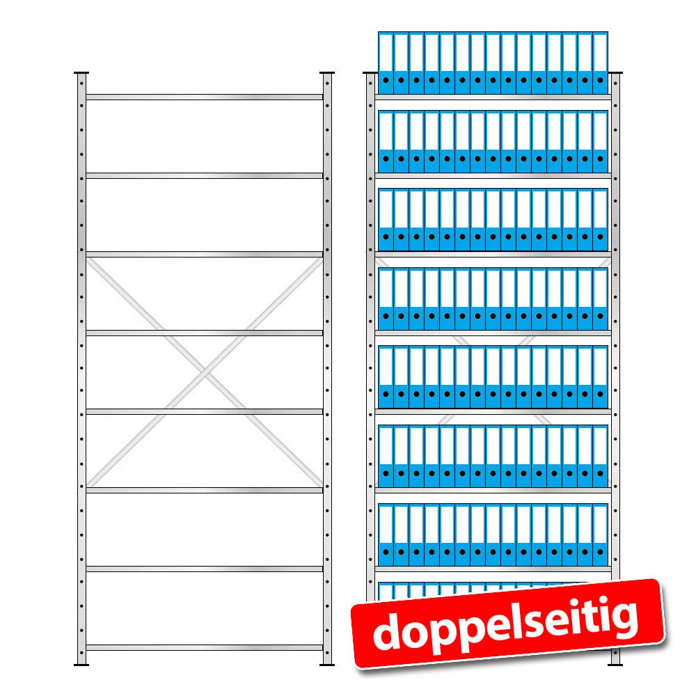 Doppelseitige Ausführung. Oberfläche glanzverzinkt. Platz für 240 breite DIN A4-Ordner.