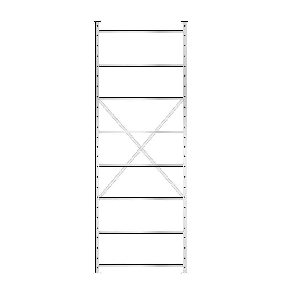 Fachbodenregal mit 8 Böden, Stecksystem, Grundregal, doppelseitige Ausführung, BxTxH 1070x630x3000 mm, Oberfläche glanzverzinkt