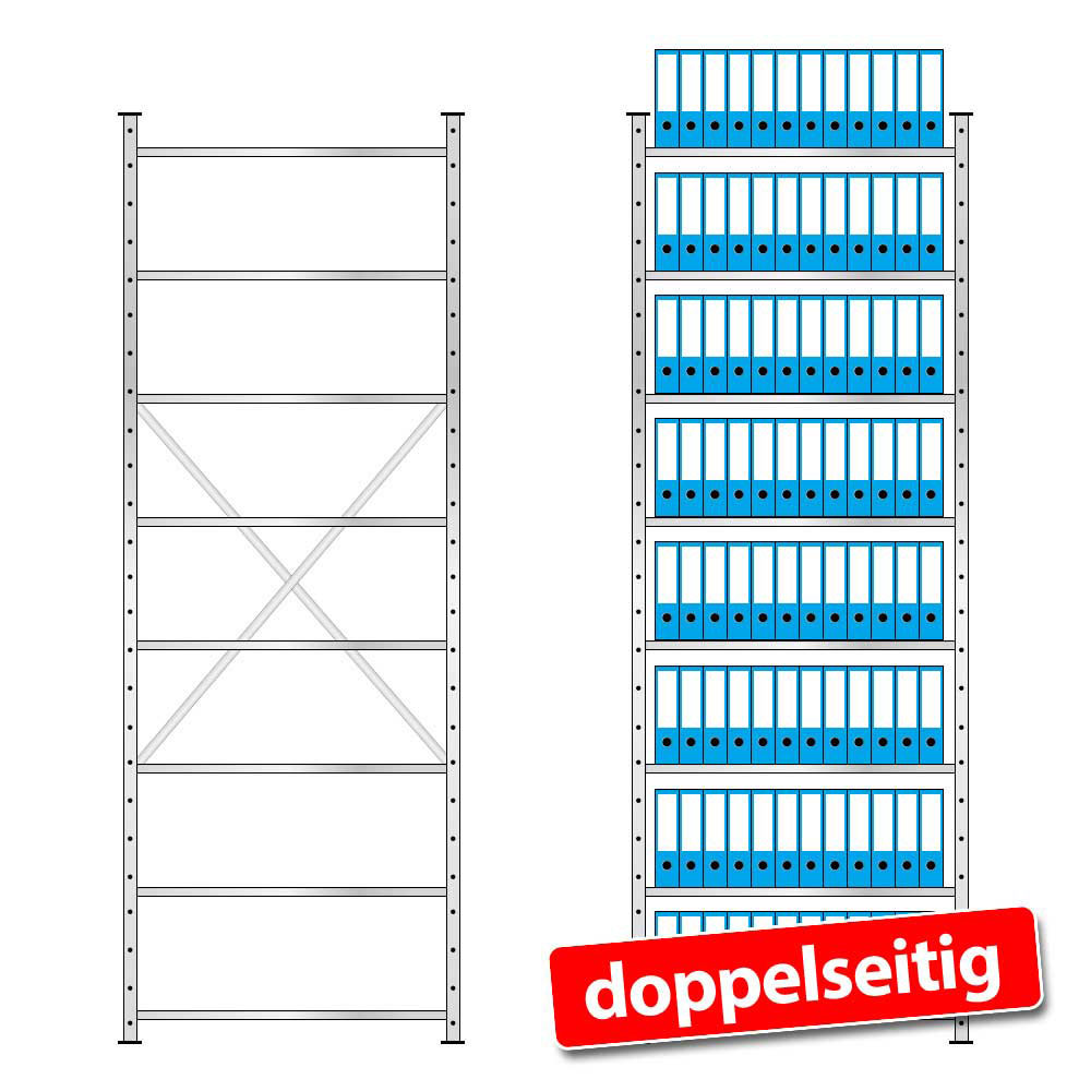Doppelseitige Ausführung. Oberfläche glanzverzinkt. Platz für 192 breite DIN A4-Ordner.