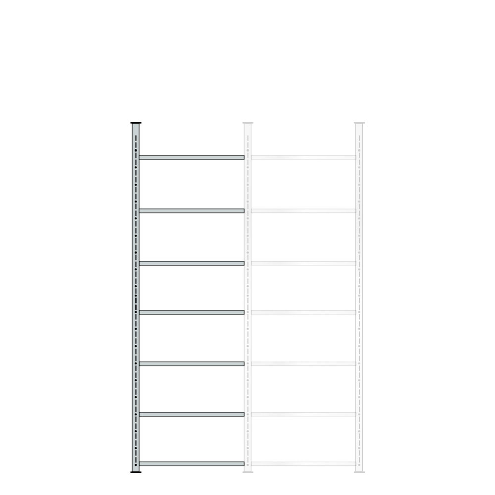 Für einseitige Nutzung. Günstiges Schraubregal mit Winkelpfosten und stabilen Regalböden, die jederzeit im Raster von 25 mm in der Höhe verstellbar sind. Mit hinterer Anschlagleiste. Dauerhafter, kratzfester Oberflächenschutz durch Glanzverzinkung.