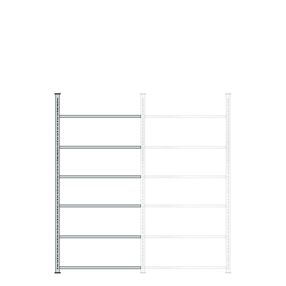 Für einseitige Nutzung. Günstiges Schraubregal mit Winkelpfosten und stabilen Regalböden, die jederzeit im Raster von 25 mm in der Höhe verstellbar sind. Mit hinterer Anschlagleiste. Dauerhafter, kratzfester Oberflächenschutz durch Glanzverzinkung.