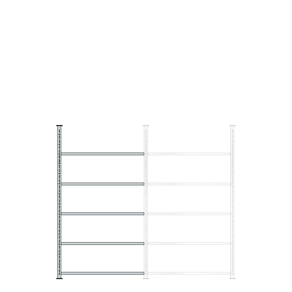 Günstiges Schraubregal mit Winkelpfosten und stabilen Regalböden, die jederzeit im Raster von 25 mm in der Höhe verstellbar sind. Für doppelseitige Nutzung mit steckbarem Anschlagbügel in der Mitte der Böden. Dauerhafter, kratzfester Oberflächenschutz durch Glanzverzinkung und zusätzlicher Kunststoffbeschichtung in Farbe lichtgrau RAL 7035.