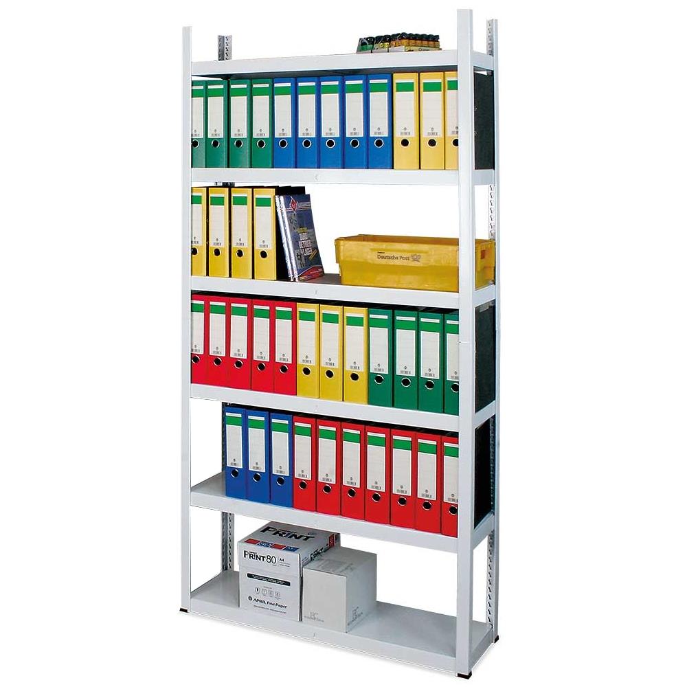Ordnerregal mit 6 Böden, Stecksystem, lichtgrau, Tragkraft 200kg/Boden, BxTxH 1000x300x2100 mm