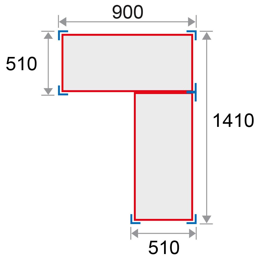 Fachbodeneckregal für schwere Lasten, rechts, 4 Ebenen, BxTxH 900/1400x500x1800 mm, Tragkraft 265 kg/Boden, Stecksystem, kunststoffbeschichtet