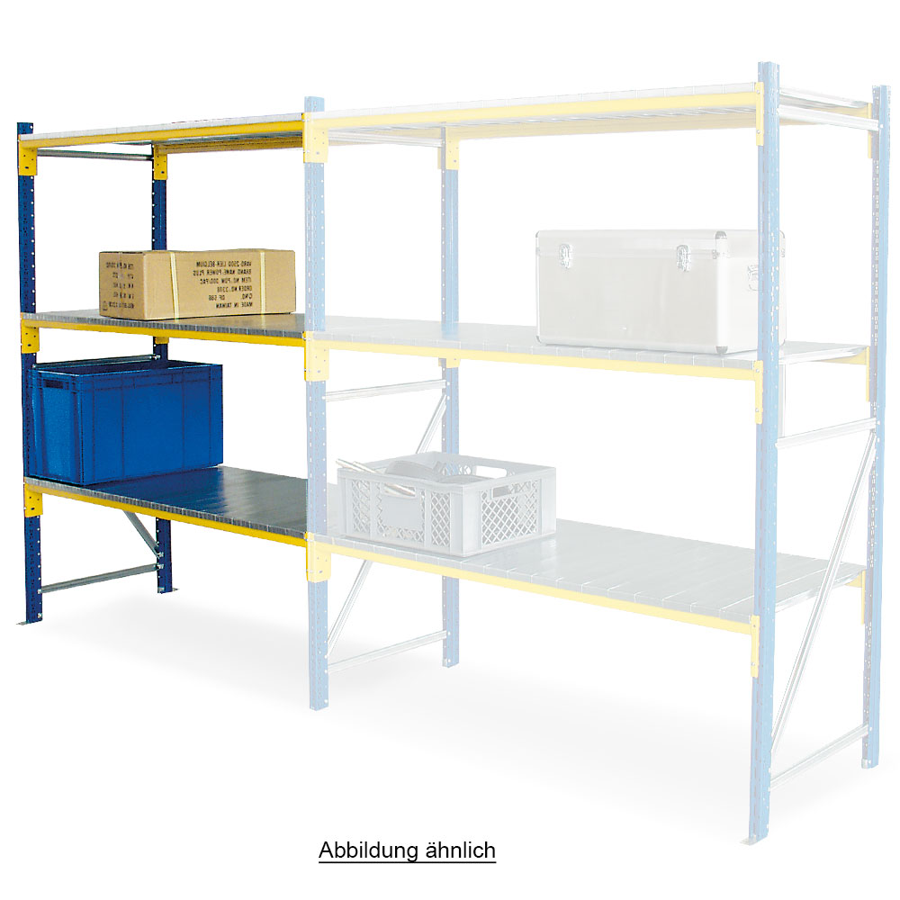 Weitspann-Steck-Anbauregal, mit 3 Stahlblechebenen, HxBxT 2000x1540x405 mm, mit Stahlpaneelen B: 100 mm