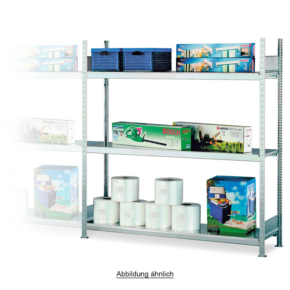 Weitspannregal mit 3 Stahlbodenebenen, Stecksystem, glanzverzinkt, BxTxH 1560x435x2000 mm