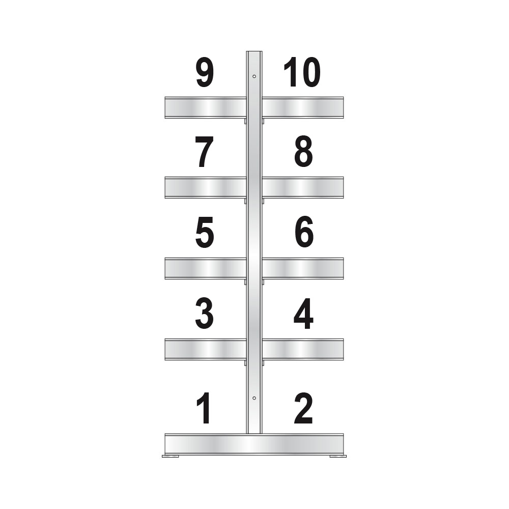 Kragarmregal / Anbauregal, feuerverzinkt, BxTxH 1000x1340x2500 mm, doppelseitig, 1 Regalfeld, (2x5) 10 Ebenen, Tragkraft/Fachebene 187 kg
