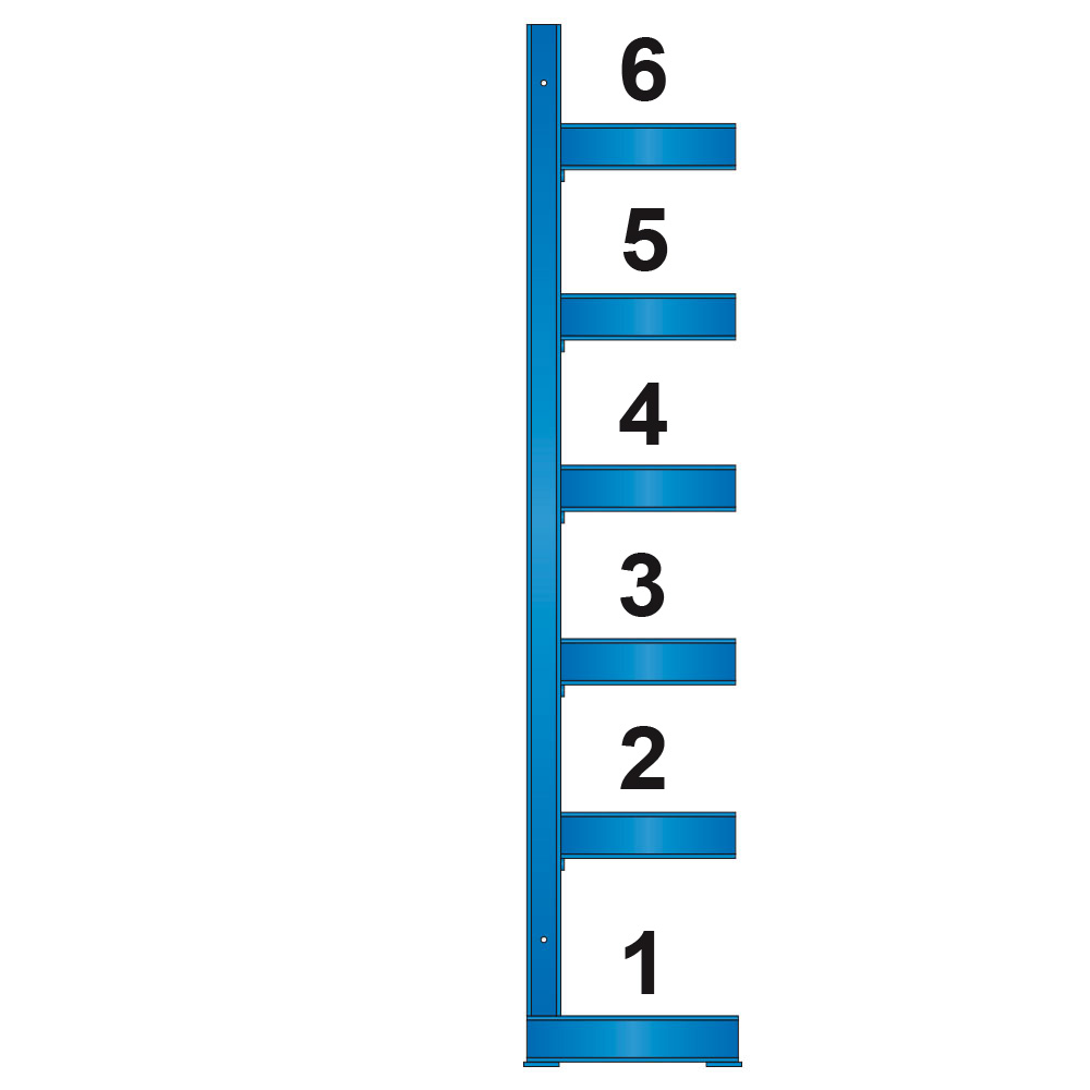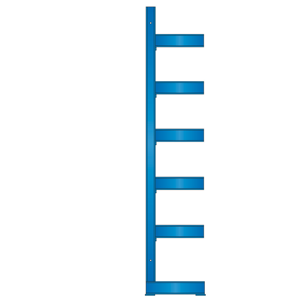 Universal-Kragarmregal, Stahlständer aus warmgewalzten IPE-Profilen, IPE 120, Ausführung blau kunststoffbeschichtet, mit verzinkten Schrauben und Spannschlössern.