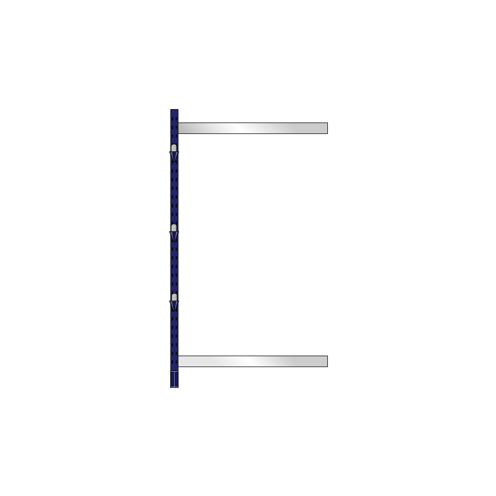Leichte Ausführung für einseitige Nutzung. Ständer aus warmgewalzten IPE-Profilen, Arme aus hochfestem Stahl geformt. Die Kragarme sind im Raster von 60 mm einsteckbar, einfach einhängen - fertig. Die Ständerfußebenen sind uneingeschränkt belastbar. Oberfläche hochwertig kunststoffbeschichtet, Farbe enzianblau RAL 5010. Diagonalkreuze und Kleinteile verzinkt. Die Lieferung erfolgt mit 60 mm hohen Abrollsicherungen.