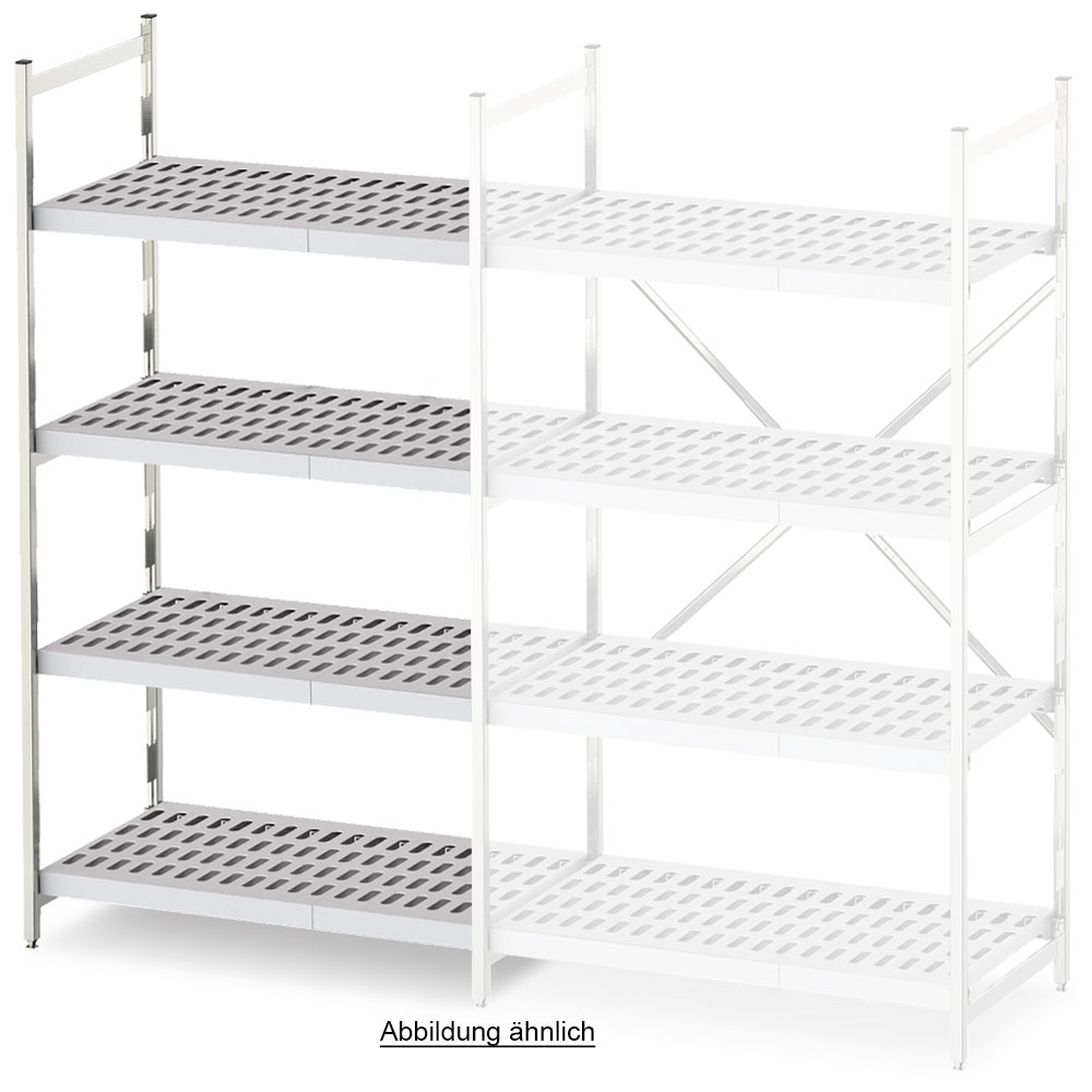 Aluminium-Anbauregal mit 4 Gitterböden, Stecksystem, BxTxH 775x400x1600 mm, Nutztiefe 380 mm