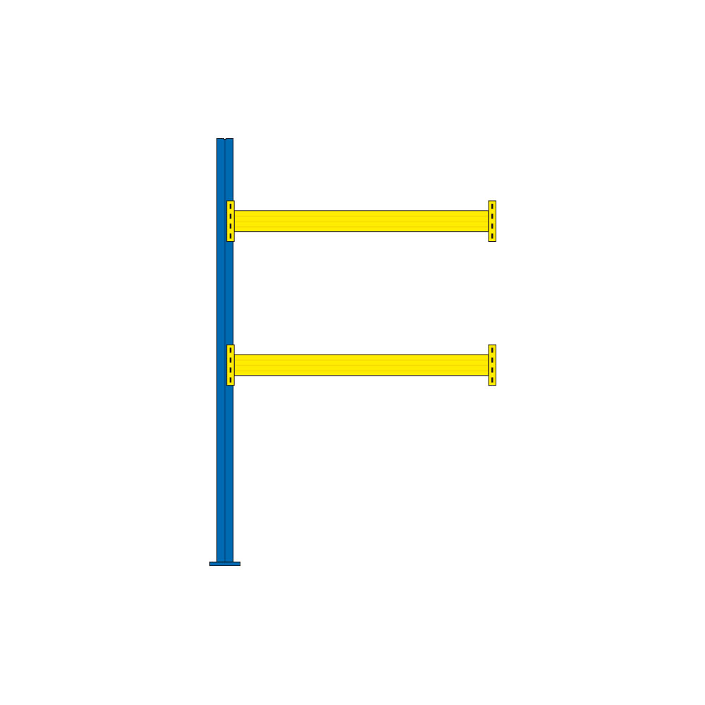 Praktisches Großfachregal für Paletten, Gitterboxen und Behälter. Mit diesem Regalsystem steht Ihnen ein leistungsstarkes und praxisbewährtes Produkt zur Auswahl. Die Stützenprofile sind aus hochfestem Stahl geformt und erhalten durch ihre spezielle Profilierung eine sehr hohe Steifigkeit. Sie werden durch Diagonal- und Horizontalstreben zu einem Fachwerkrahmen verschraubt. Die Anlieferung bei Ihnen erfolgt zerlegt. Die steckbaren Tragbalken gewährleisten eine einfache und schnelle Montage und kurze Umbauzeiten. Sie sind auch nachträglich im Raster von 50 mm in der Höhe verstellbar. Das praxisgerechte Zubehör ermöglicht den betrieblichen Erfordernissen leicht anpaßbare Lösungen. Dieses Regalsystem ist mit allen Stapelgeräten bedienbar. Regalstützen blau RAL 5010, Fachwerk verzinkt, Tragbalken goldgelb RAL 1004 kunststoffbeschichtet.