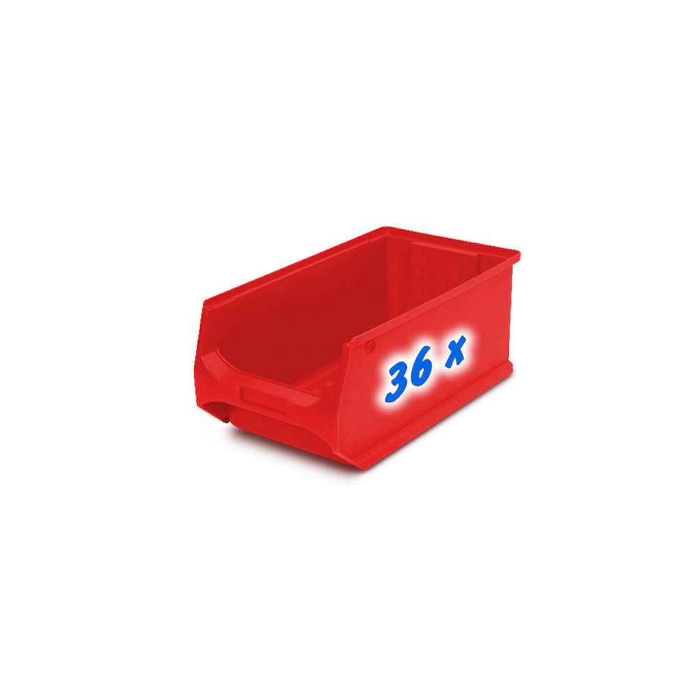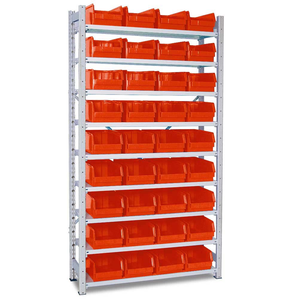 Steckregal, verzinkt, BxTxH 1070x315x2000 mm, 9 Böden, 36 Sichtboxen LB 3 Farbe rot
