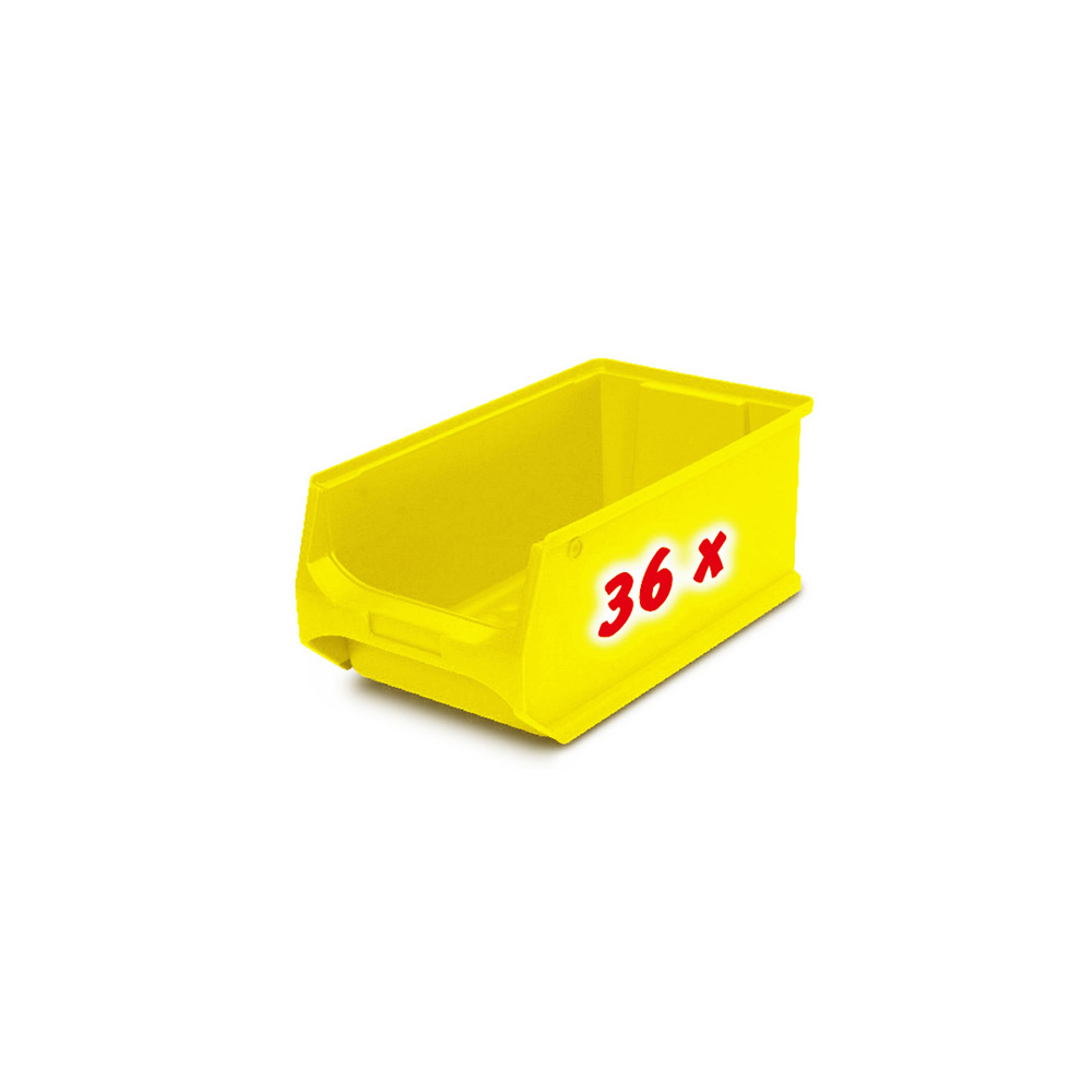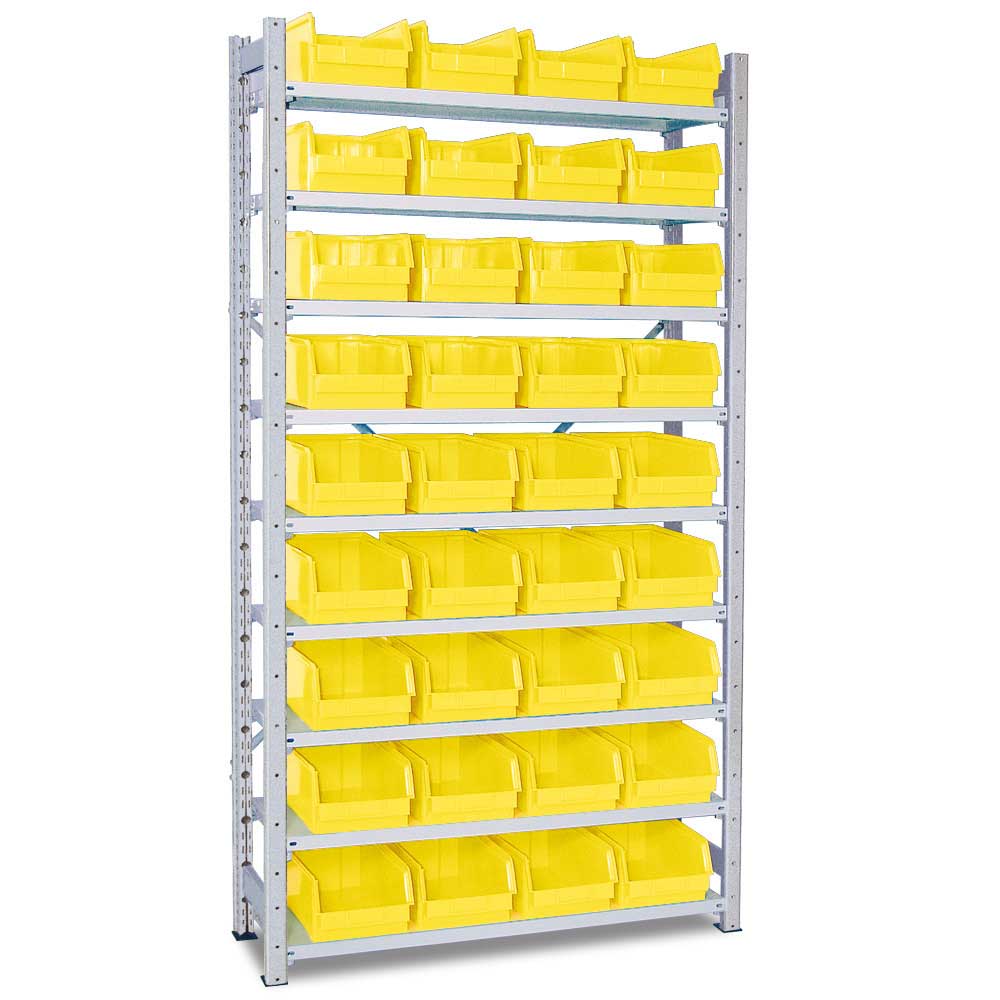 Steckregal, verzinkt, BxTxH 1070x315x2000 mm, 9 Böden, 36 Sichtboxen LB 3 Farbe gelb