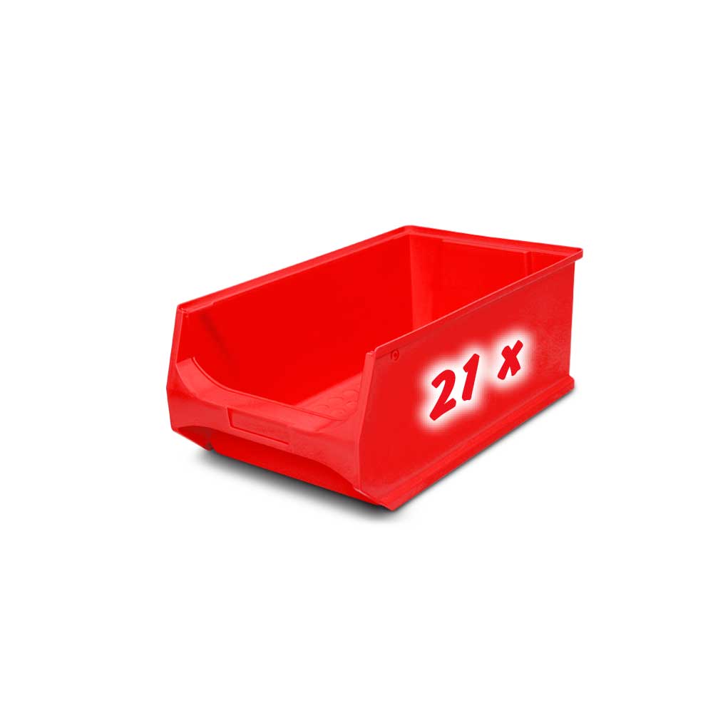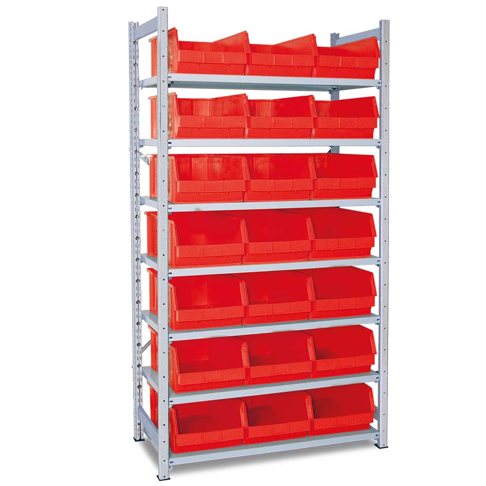 Steckregal, verzinkt, BxTxH 1070x515x2000 mm, 7 Böden, 21 Sichtboxen LB 2 Farbe rot