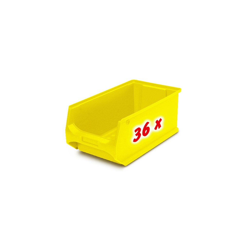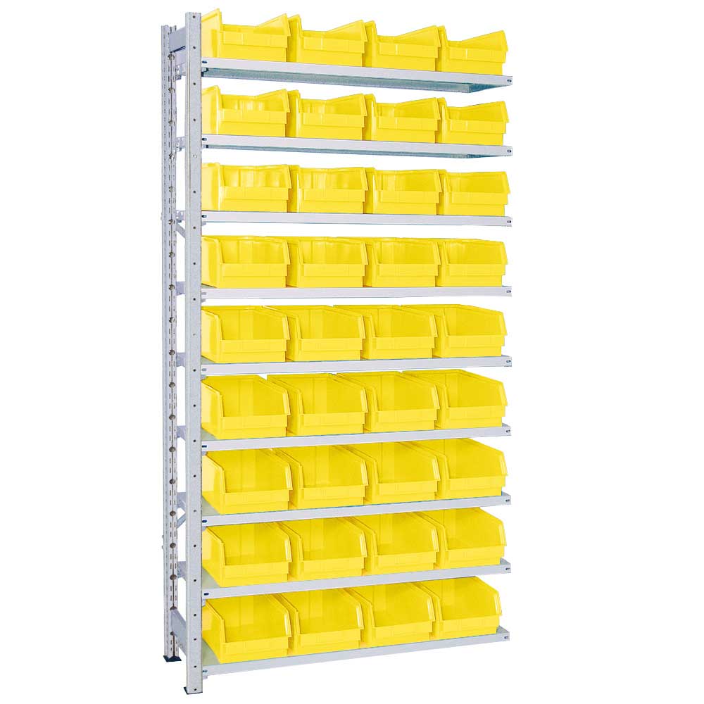 Anbauregal, verzinkt, BxTxH 1035x315x2000 mm, 9 Böden, 36 Sichtboxen LB 3 Farbe gelb