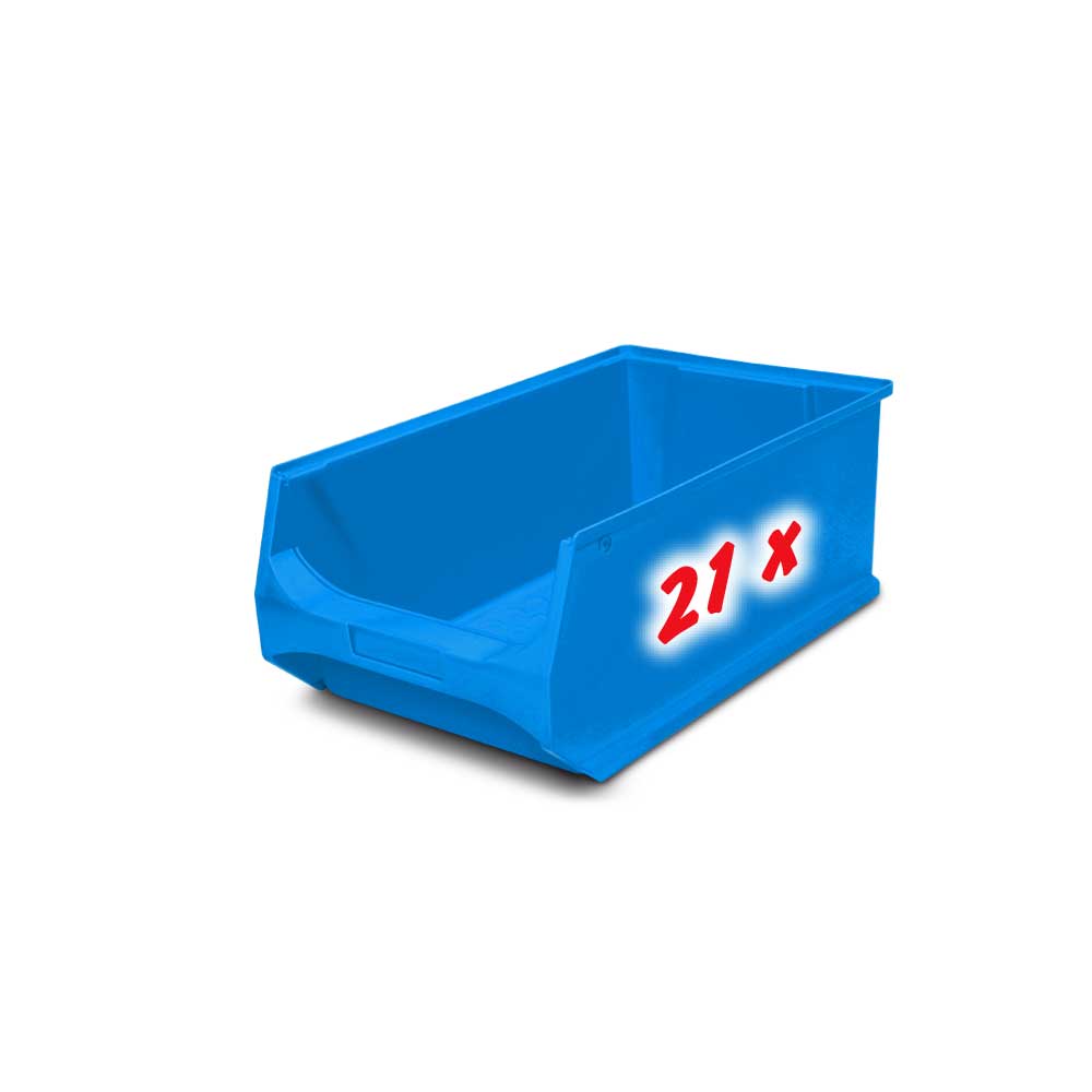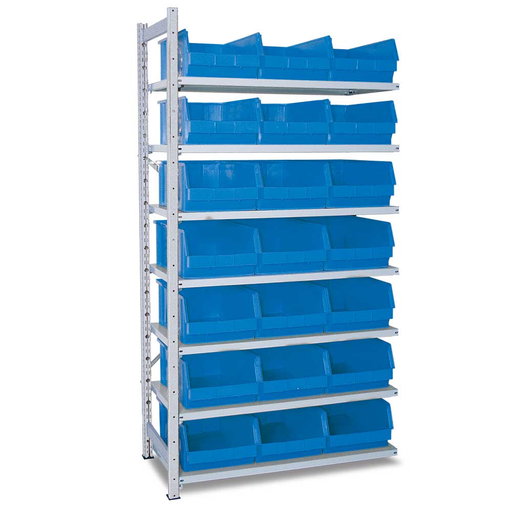 Anbauregal, verzinkt, BxTxH 1000x515x2000 mm, 7 Böden, 21 Sichtboxen LB 2 Farbe blau
