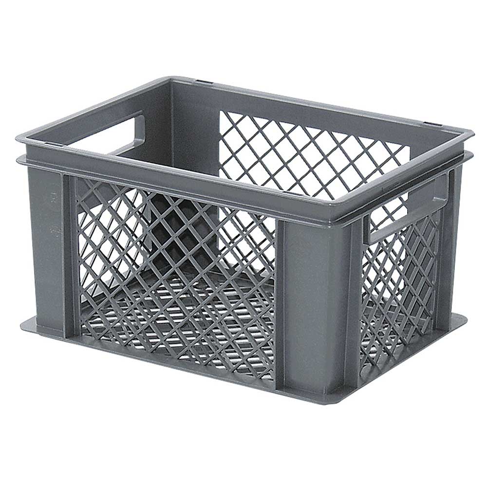 Das fahrbare Schrägbodenregal ist mit 15 robusten durchbrochenen Euro-Stapelkästen im Format 400x300x225 mm bestückt. Diese Eurobehälter sind die idealen Lager- und Transportbehälter für Industrie und Handwerk. Die Behälter sind aus lebensmittelechtem PE-HD hergestellt, kältebeständig bis -40°C, hitzebeständig bis +60°C. 2 Durchfassgriffe gewährleisten ein einfache und komfortable manuelle Handhabung.