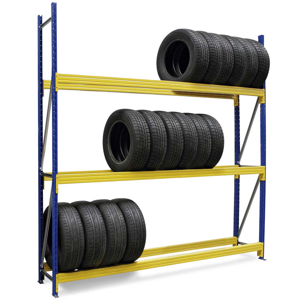 Weitspann-Reifenregal, BxTxH 2780x400x2500 mm, Fachbreite 2700 mm, Tragkraft je Fach 950 kg