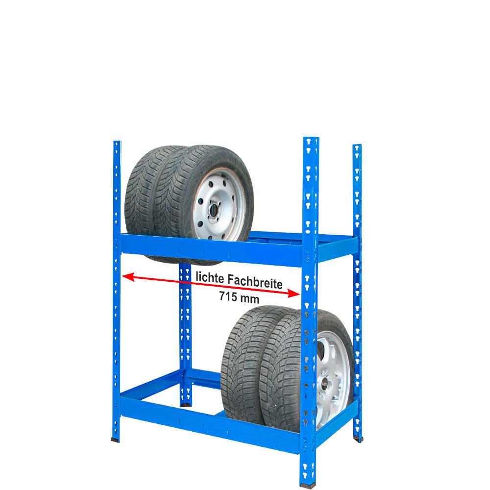 Reifenregal mit 2 Regalebenen, Stecksystem, BxTxH 800x500x1200 mm, geeignet für Reifen bis Ø 680 mm