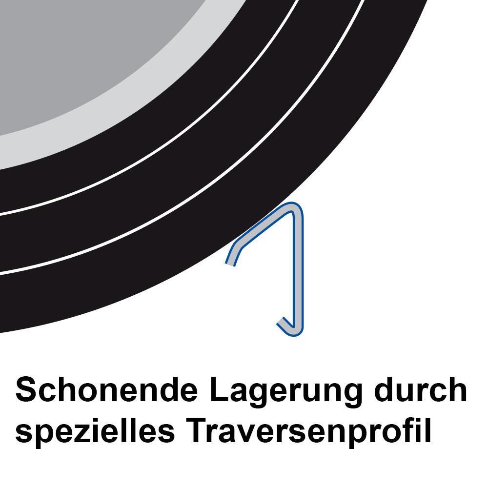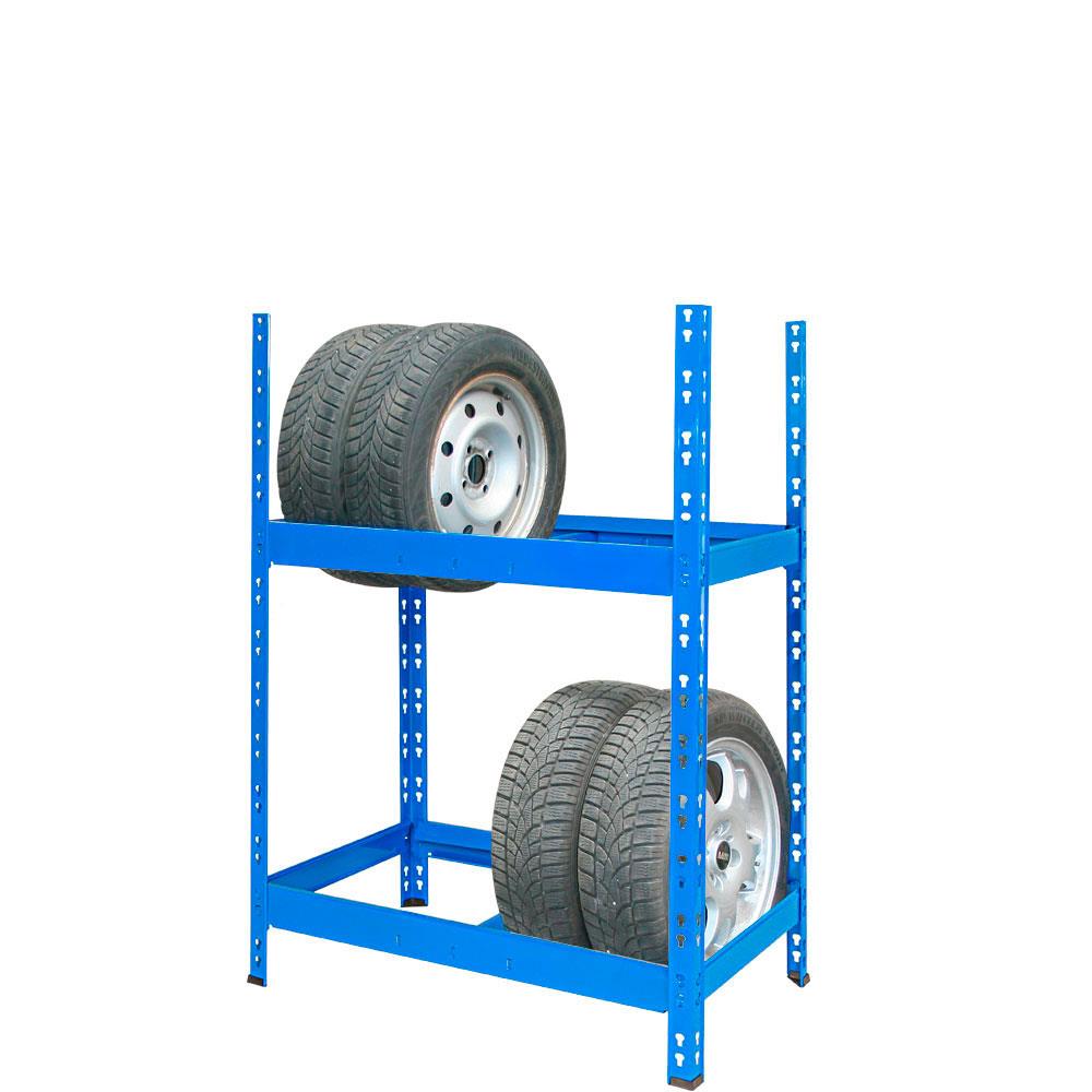 Reifenregal mit 2 Regalebenen, Tragkraft pro Ebene 100 kg. Alle Teile sind hochwertig kunststoffbeschichtet in Farbe blau RAL 5017. Das Reifenregal ist für Reifen bis Ø 680 mm geeignet und ermöglicht eine beidseitige Bestückung und Entnahme. Die Auflagebalken sind gesteckt und im Raster von 90 mm in der Höhe verstellbar. Durch das spezielle Traversenprofil ist eine schonende Lagerung der Reifen möglich.