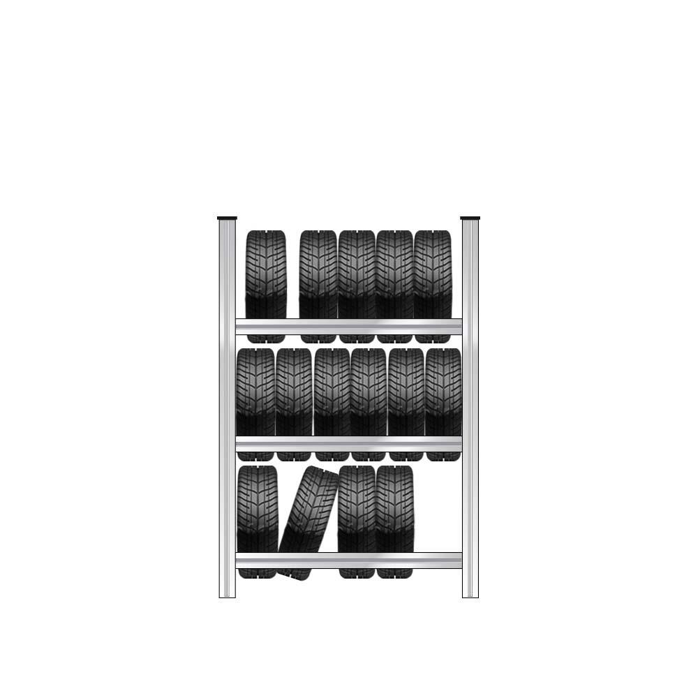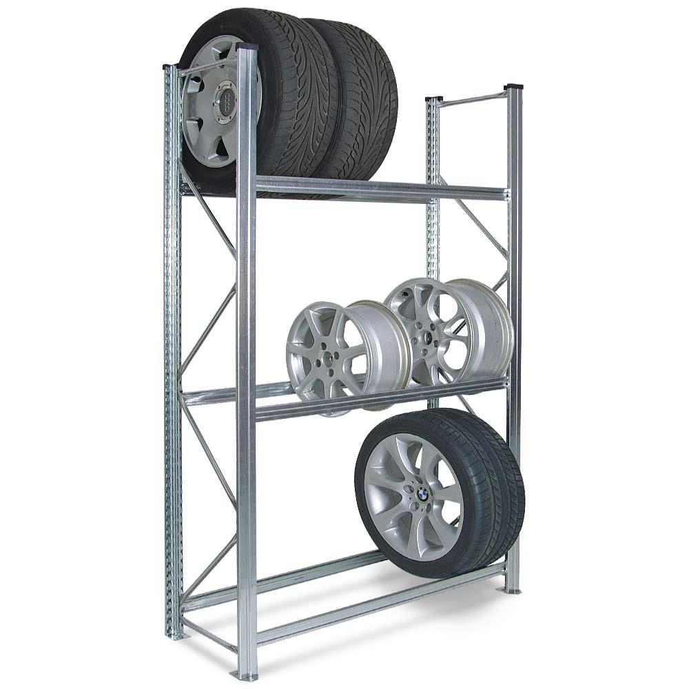 Reifenregal mit 3 Reifenebenen für bis zu 24 Reifen, verzinkt, Stecksystem, BxTxH 1280x425x2000 mm