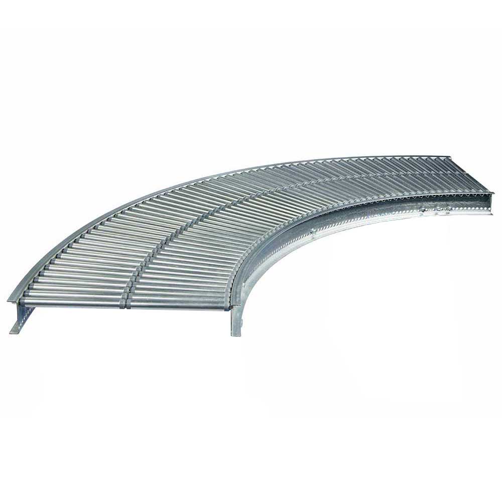 "Klein-Rollenbahnkurve: 90°, Innenradius: 800 mm, Bahnbreite: 200 mm, Achsabstand: 50 mm, Tragrollen Ø 20x1,0 mm"