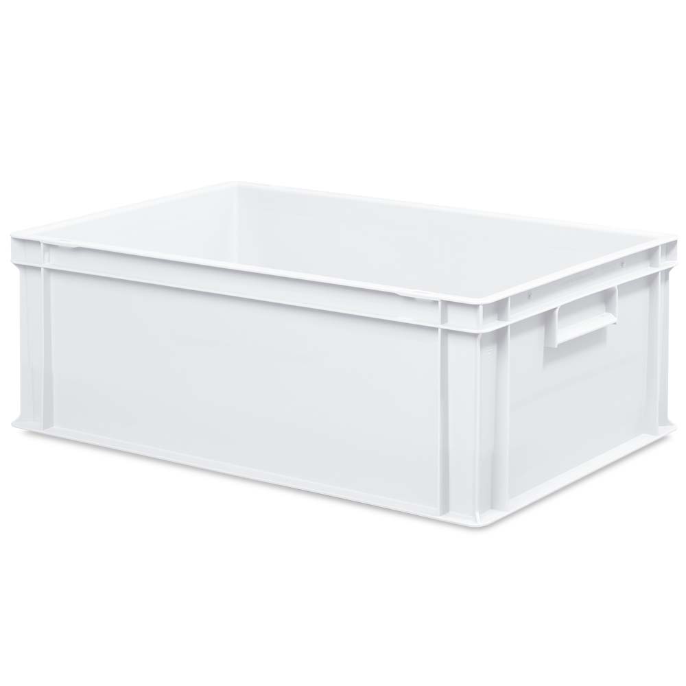 Das fahrbare Schrägbodenregal ist mit 10 robusten Euro-Stapelkästen im Format 600x400x220 mm bestückt. Diese Eurobehälter sind die idealen Lager- und Transportbehälter für Industrie und Handwerk. Glatte Innenwände ermöglichen eine leichte und hygienische Reinigung der Boxen. 2 Griffleisten gewährleisten ein einfache und komfortable manuelle Handhabung.