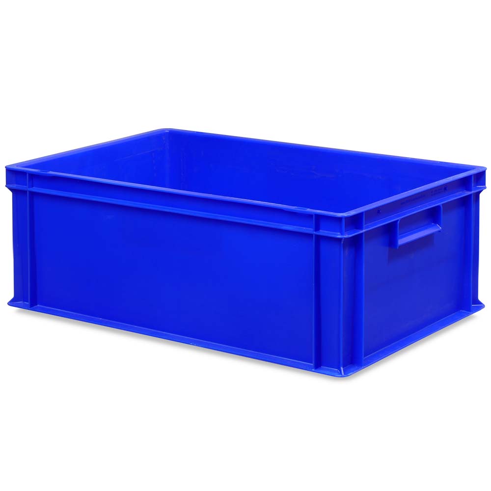 Das fahrbare Schrägbodenregal ist mit 10 robusten Euro-Stapelkästen im Format 600x400x220 mm bestückt. Diese Eurobehälter sind die idealen Lager- und Transportbehälter für Industrie und Handwerk. Glatte Innenwände ermöglichen eine leichte und hygienische Reinigung der Boxen. 2 Griffleisten gewährleisten ein einfache und komfortable manuelle Handhabung.
