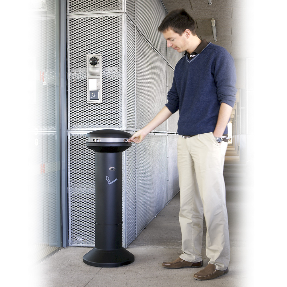 Standaschenbecher "Infinity™" von Rubbermaid im eleganten Design und Vollmetallausführung mit großem Fassungsvermögen für stark frequentierte Bereiche. Beschwerte Sockel und Schraubvorrichtung für mehr Stabilität in Außenbereichen. 360º Entsorgungsbereich mit Edelstahl-Ausdrückflächen. Der Hygienisch und leicht zu wartende Stahl-Innenbehälter aus verzinktem Stahl hat eine Kapazität von ca. 8000 Zigarettenstummel und ermöglicht eine einfache Entleerung ohne Kontakt mit dem Zigarettenabfall zu haben. Das kuppelförmige Oberteil gewährleistet Schutz bei jeder Witterung und verhindert, dass Wasser in den Behälter läuft. Eine integrierte Öse für ein Vorhängeschloss bietet Sicherheit gegen Manipulation und Diebstahl.