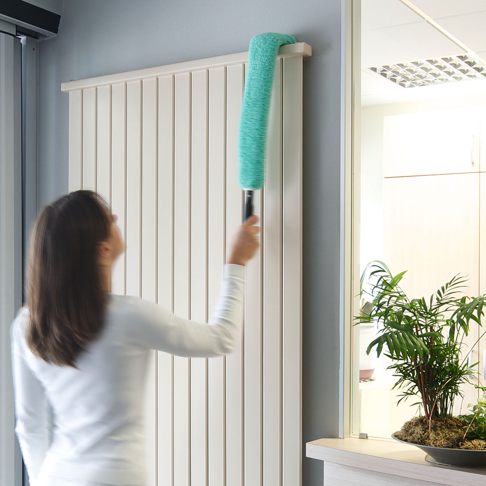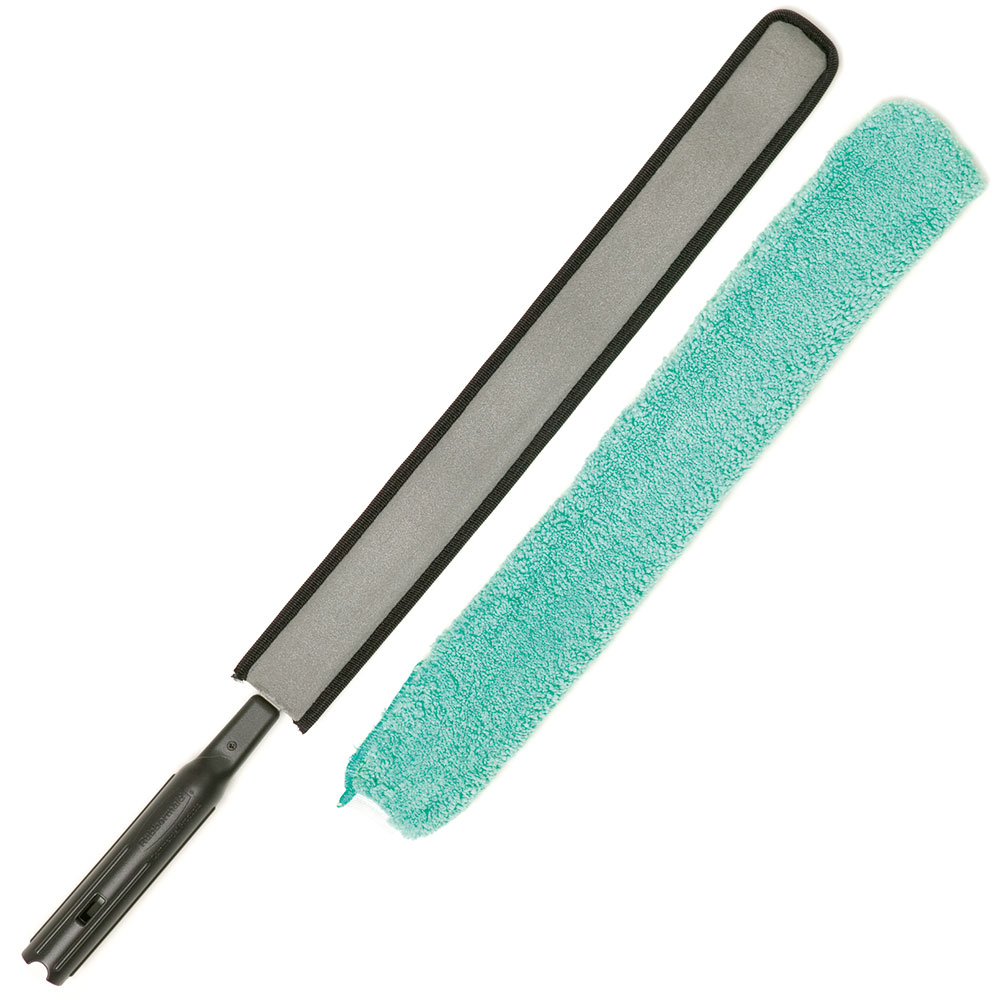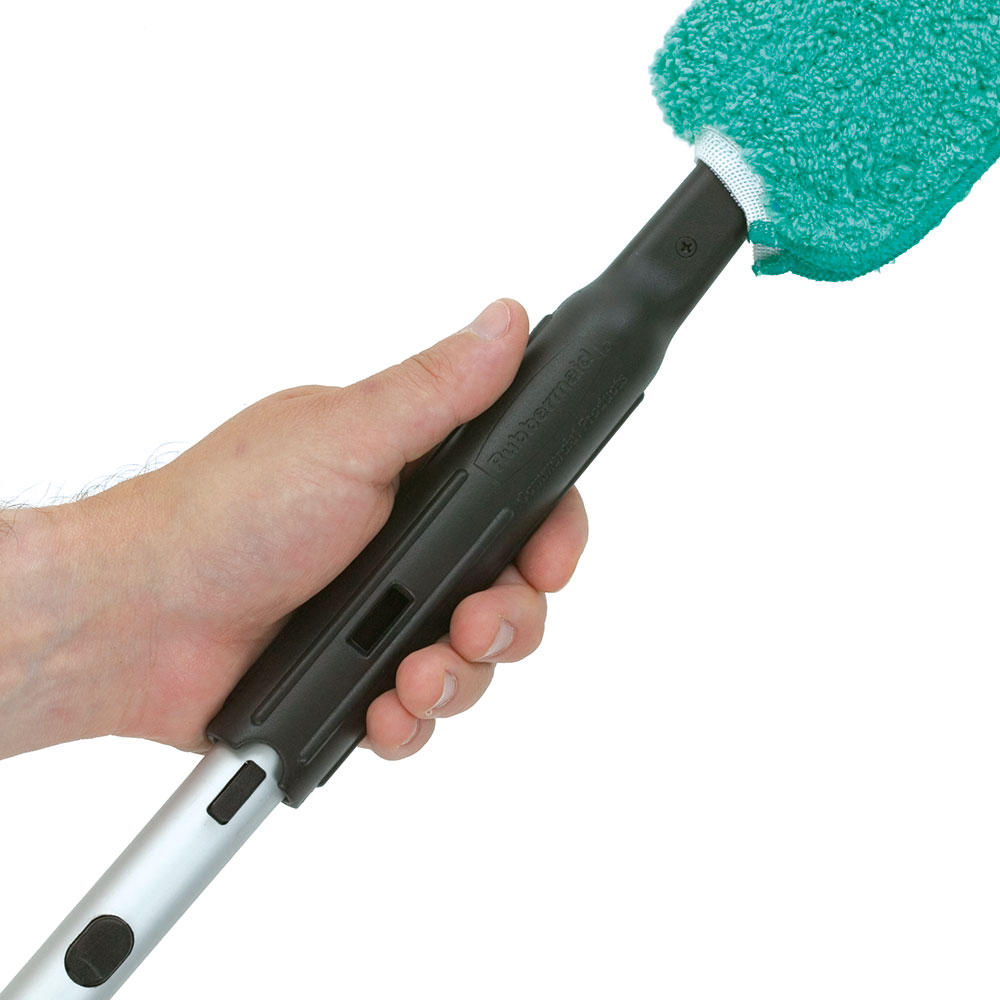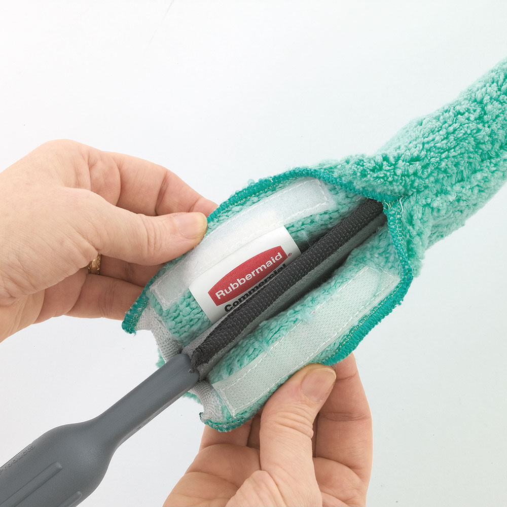 Das Staubmopp-Set von Rubbermaid HYGEN kann trocken oder feucht verwendet werden. 100% stumpfe Mikrofaser. Extrem lange Lebensdauer. Der Überzug verträgt 500 Waschgänge bei 95°C und 500 Trocknungsgänge bei 60°C, bzw. 200 Durchgänge mit Bleichmittel. Ein Klettverschluss und Elastikband gewährleisten gute Befestigung des Überzugs. Der Schnellverbindungsmechanismus für einen Teleskopstiel verwandelt den Handmopp in ein ausziehbares Reinigungsgerät.