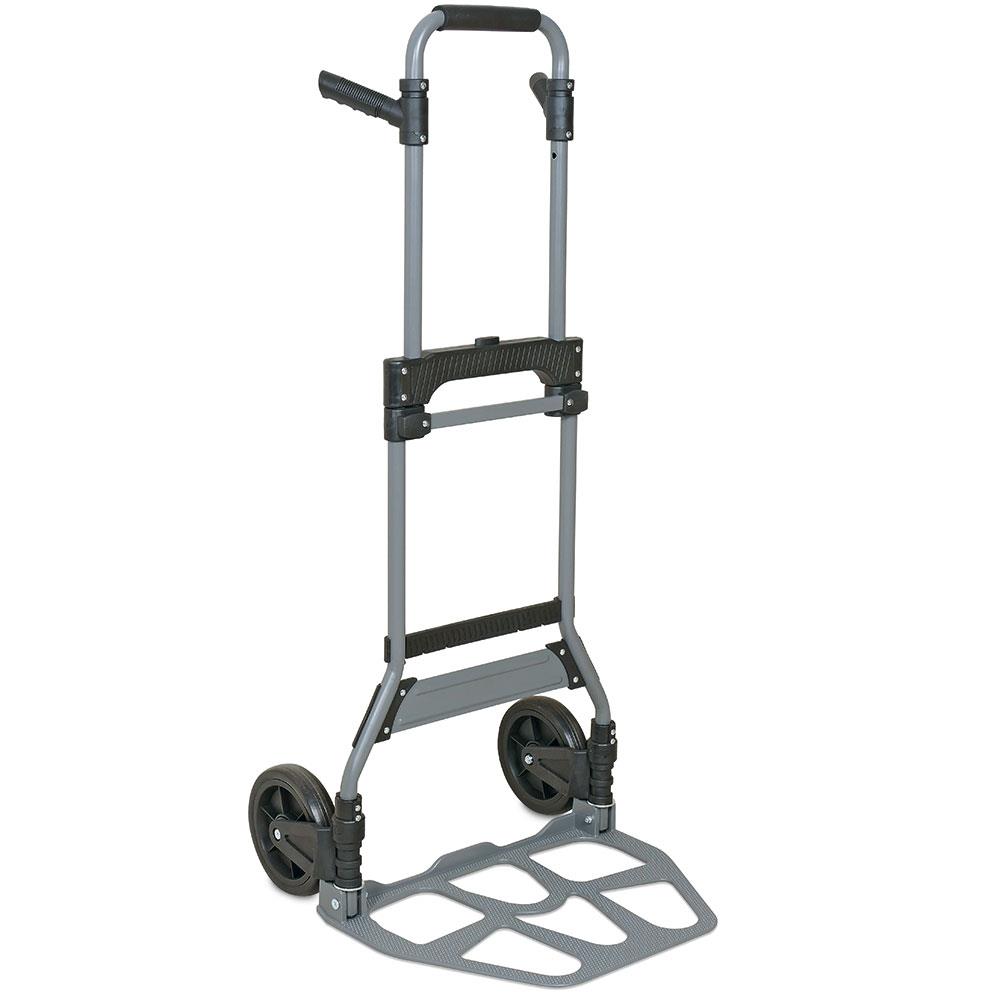 Besonders praktische Karre für den Kleinlaster, LKW und Kombi. Die Stapel-Karre ist zusammenklappbar, einziehbar und leicht zu verstauen, besteht aus einem stabilen, pulverbeschichteten Stahl-Teleskoprahmen und hat nur ca. 5,5 kg Eigengewicht. Mit wenigen Handgriffen entsteht eine vollwertige Stapelkarre. Die Stapelkarre verfügt über TPR-Räder mit PP-Felgen, ØxB 175x33 mm sowie einer klappbaren Aluminiumguss-Schaufel, BxT 485x340 mm mit hochwertigen Federklappsystem. 2 ausklappbare, arretierbare Handgriffe.