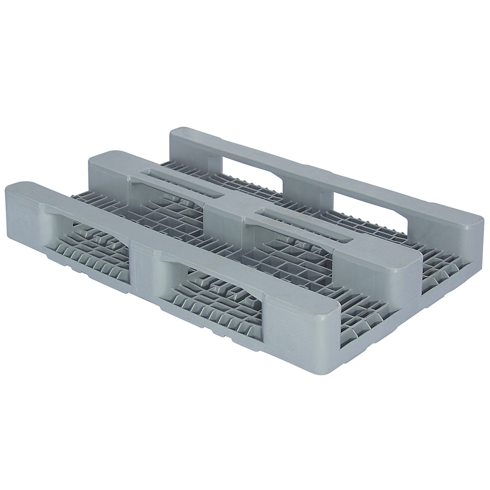 "Euro-Hygienepalette H1 mit 3 Kufen, Sicherungsrand und Mittelarretierung, LxBxH 1200x800x160 mm, Oberdeck durchbrochen, grau"
