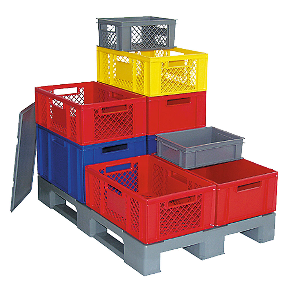 "Kunststoffpalette im Euromaß mit 3 Kufen und Sicherungsrand, LxBxH 1200x800x150 mm, geschlossene Deckfläche, grau"