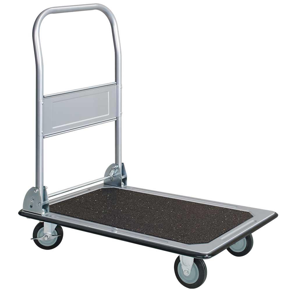Der ideale Helfer zum Transportieren von unhandlichen Lasten. Vielseitig einsetzbar in Büro, Betrieb und Freizeit zum Beispiel als Reifen-Transportwagen. Mit einem Handgriff umlegbarer Schiebebügel, leicht zu verstauen. Daher bestens geeignet für den Kofferraum und in Lieferfahrzeugen.