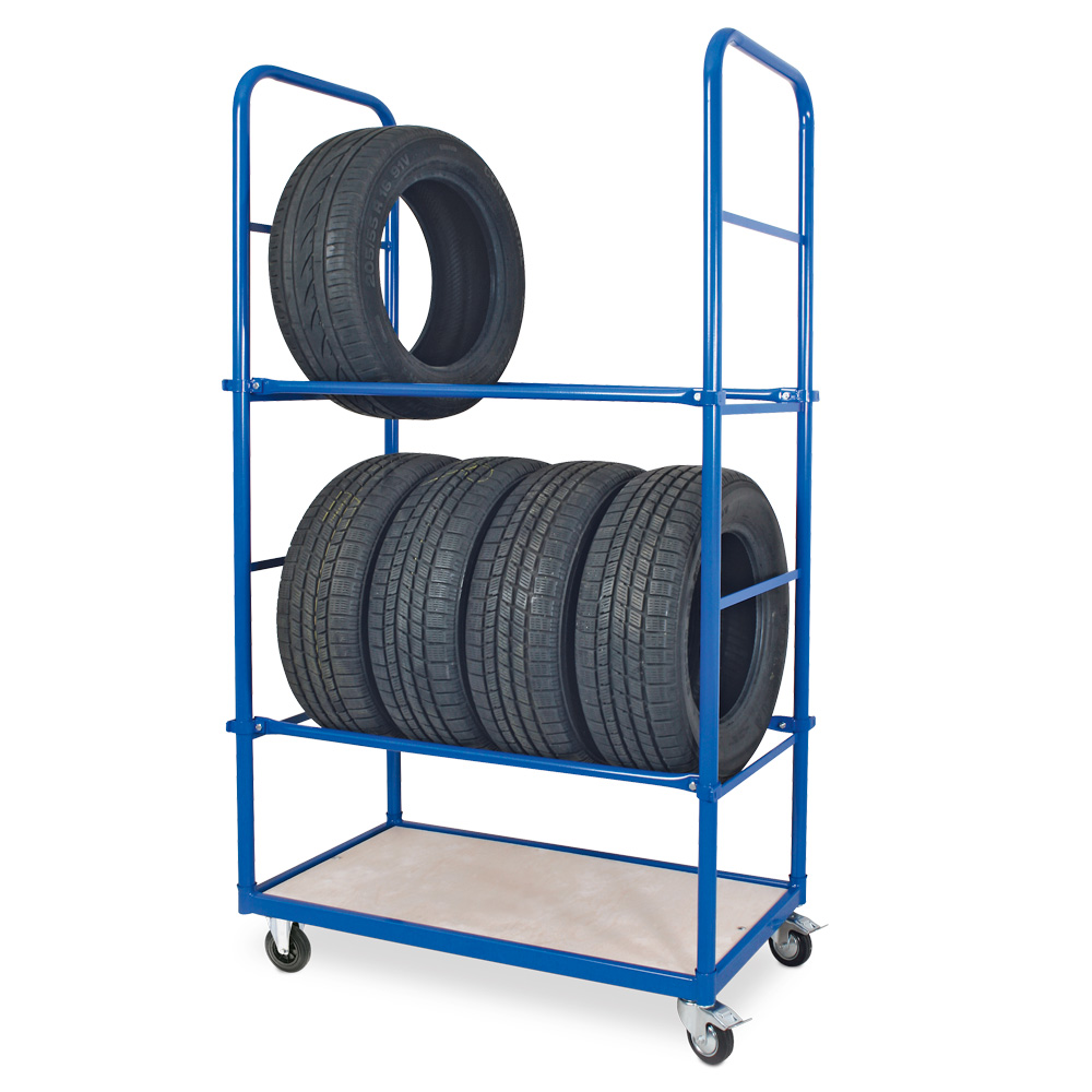 Reifentransportwagen, LxBxH 1020x500x1880 mm, 2 Lenkrollen mit Feststellbremse und 2 Bockrollen