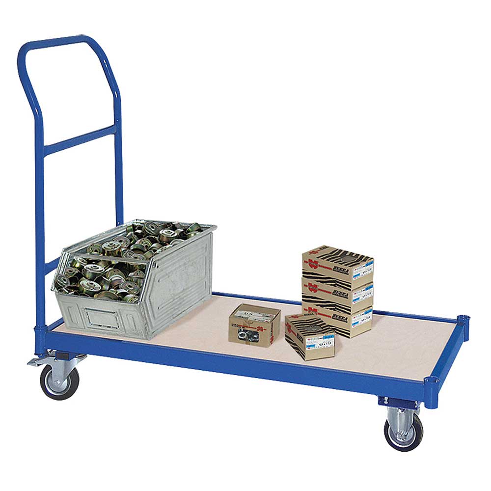 Schiebebügelwagen, LxBxH 1070x500x890 mm, 2 Bockrollen, 2 Lenkrollen mit Feststellbremse