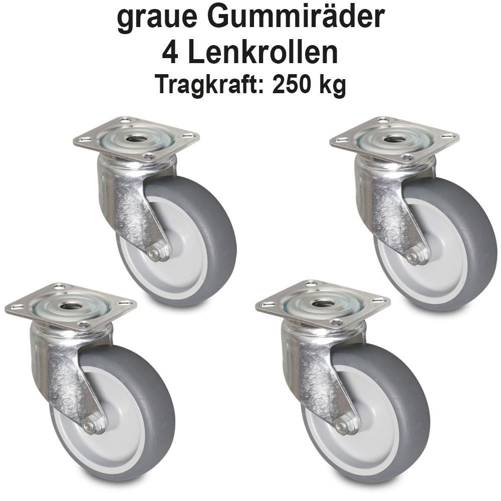 • 4 Kugelgelagerte Lenkrollen, Gehäuse aus verzinktem Stahl