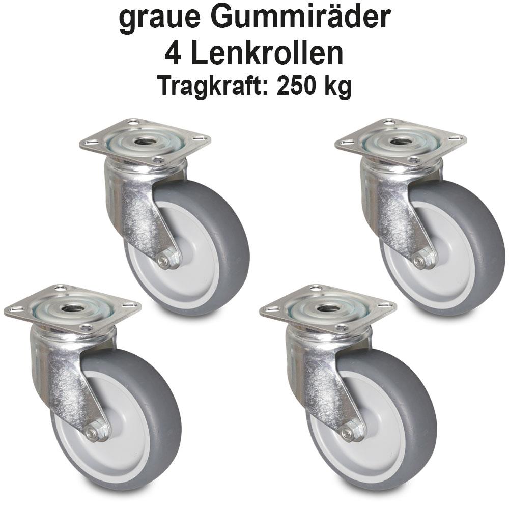 • 4 Kugelgelagerte Lenkrollen, Gehäuse aus verzinktem Stahl