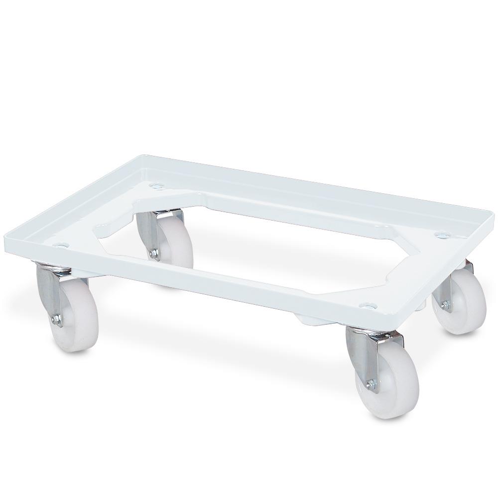 "ABS-Kunststoff-Transportroller für 600x400 mm Eurobehälter, weiß, 100 mm Kunststoff-Rad in weiß, Deck offen, Tragkraft 250 kg"