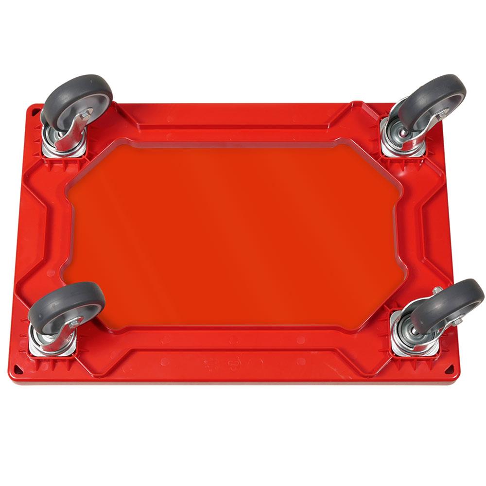 Transportroller für 600x400 mm Eurobehälter, geschlossenes Deck, mit 4 Lenkrollen und grauen Gummirädern, Tragkraft 250 kg, rot