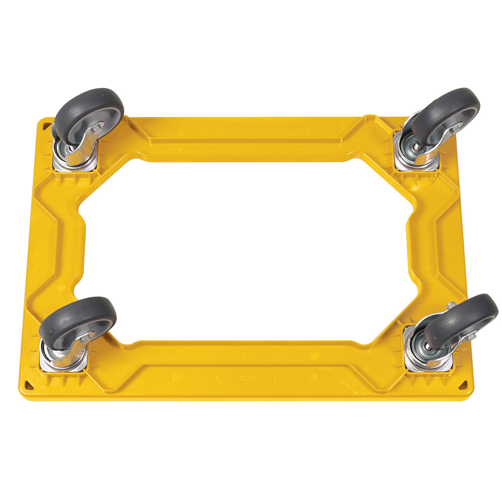 "ABS-Kunststoff-Transportroller für 600x400 mm Eurobehälter, gelb, 100 mm Gummi-Rad, Deck offen, Tragkraft 250 kg"