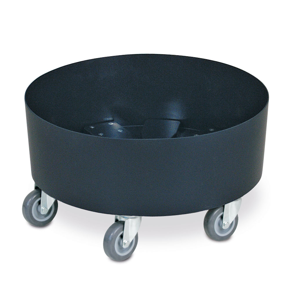 ABS-Kunststoff-Tonnenroller mit 5 Räder Ø 75 mm, graue Polyurethanlauffläche, verzinkte Lenkrollen, Tragkraft 100 kg