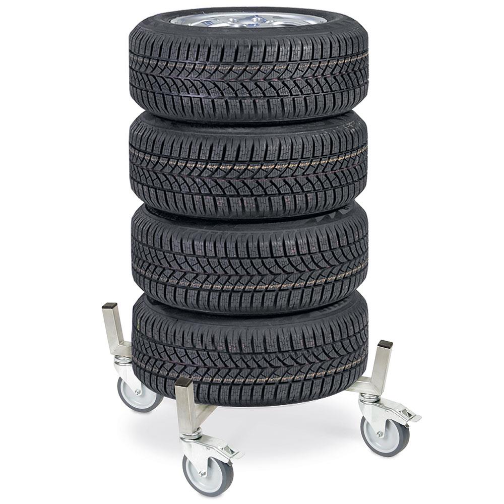 Transportroller für Rundbehälter, Tonnen und Reifen bis Ø 680 mm aus Edelstahl