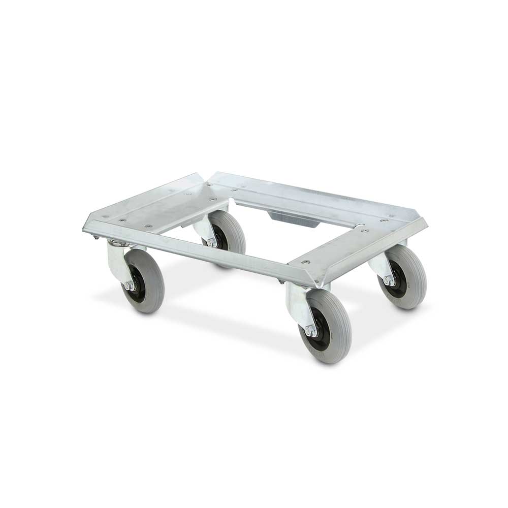 Alu-Flüster-Roller für Eurobehälter, LxB 413x311, 100 mm PU-Rad, Deck offen, Tragkraft 250 kg