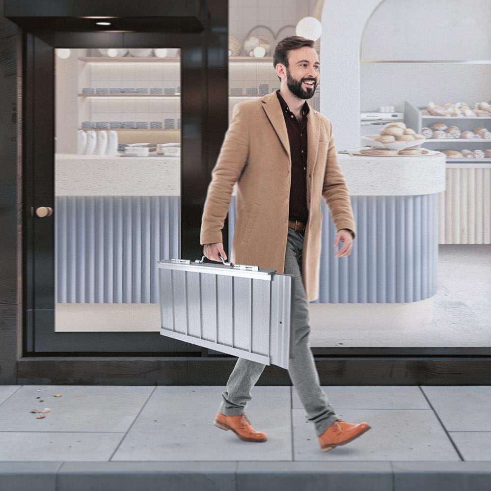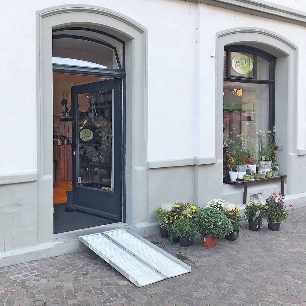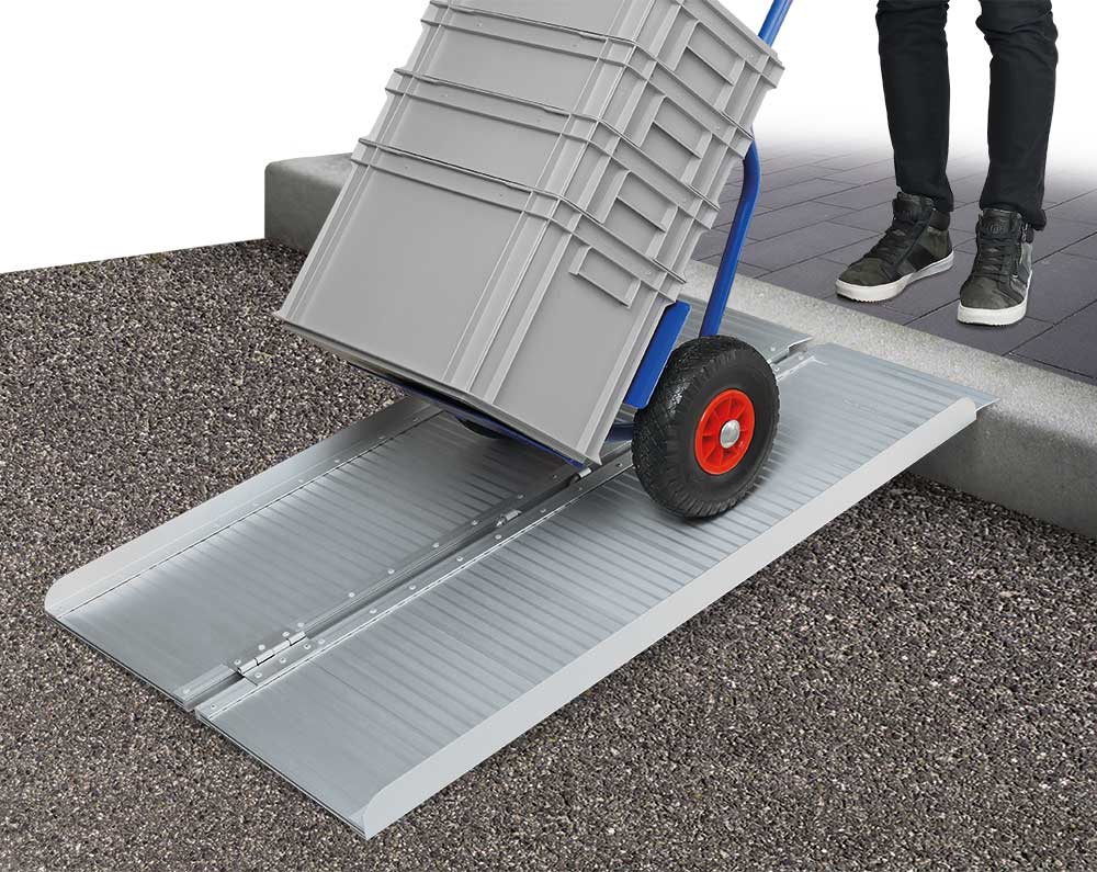 Klappbare Auffahrrampe, Länge 1220 mm, BxH 730x45 mm, geklappt 360 mm breit
