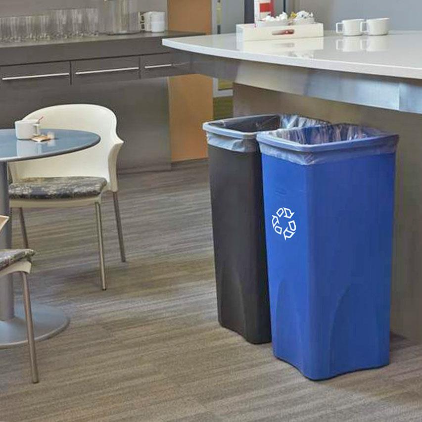 Wertstoff- und Abfallbehälter aus robustem Polyethylen-Kunststoff (PE-HD). Für den Einsatz im Innen- und Außenbereich geeignet. Leicht zu reinigen durch glatte Innenwände und abgerundete Ecken. Für verschiedene praktische Einwurfdeckel für hygienische und berührungsfreie Entsorgung